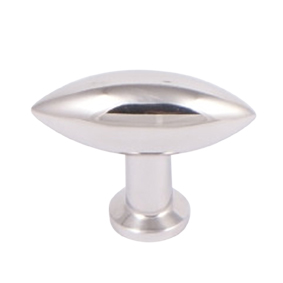 Elegant ei-vormig meubelknopje op een rond voetje in massief gepolijst RVS. Kan horizontaal en verticaal worden toegepast. Verkrijgbaar in 37mm, 52mm en 67mm.