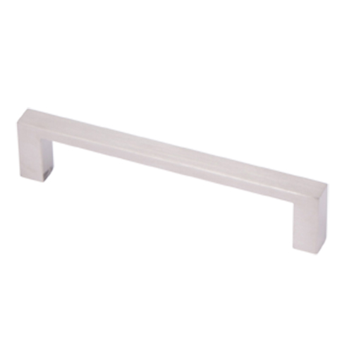 Haaks U-vormig plat meubelgreepje in massief geborsteld RVS. Verkrijgbaar in 140mm (hoh 128mm), 172mm (hoh 160mm) en 236mm (hoh 224mm).