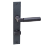 Idem als bovenstaande maar dan met een toilet/badkamersluiting, afstand midden krukgat tot midden slot. Vrij- en bezet uitvoering met blok knop.