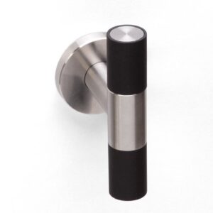 Deurkruk T-Bone T-model gunmetal op rond geveerd rozet aantal