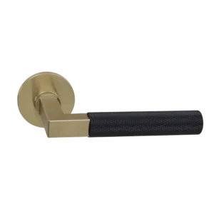 Deurkruk Modul Bauhaus Struktur matgoud PVD/ carbon PVD op dun rond geveerd rozet